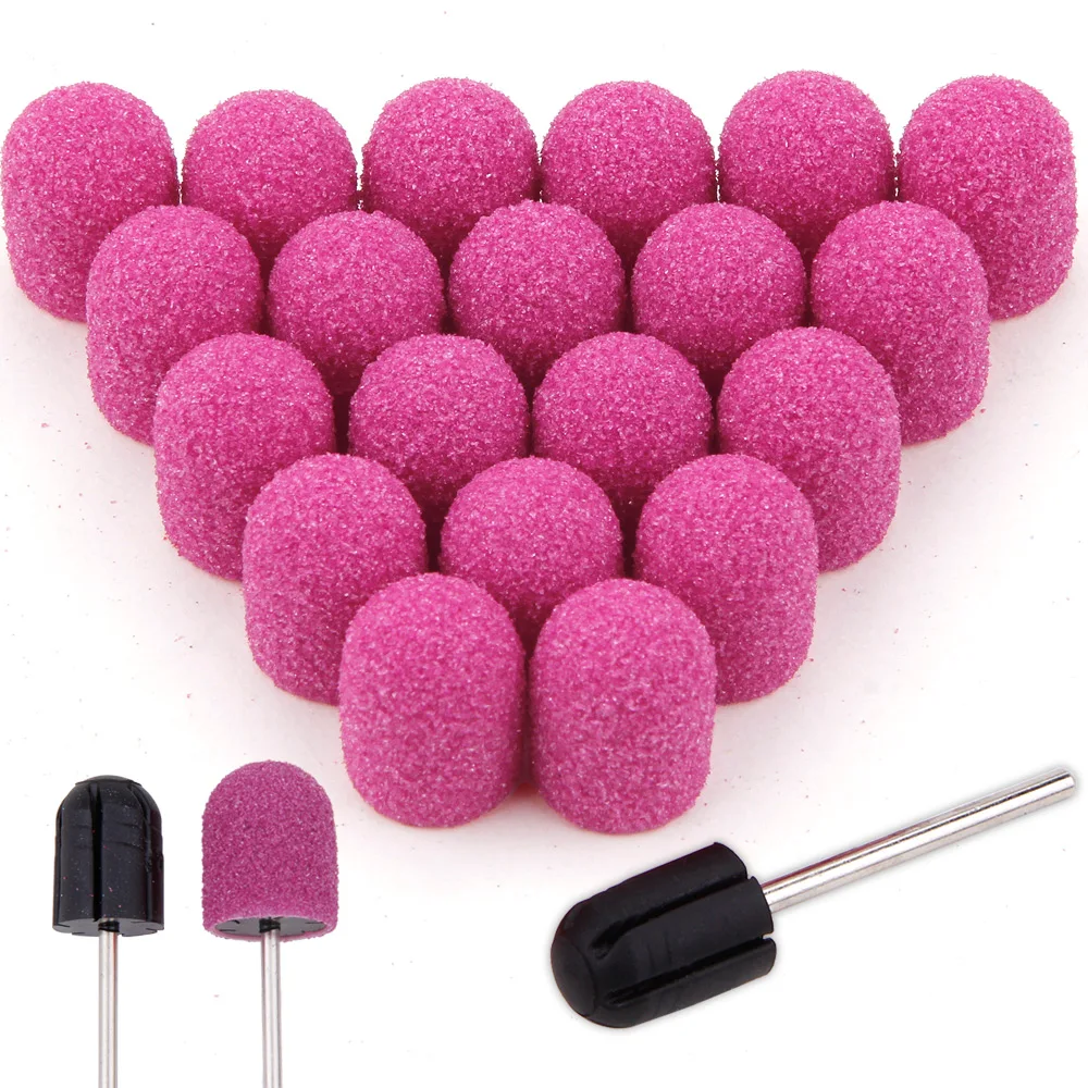 Name: 20 piezas, Purple, pulido de uñas, bandas de lijado, gorros de pedicura con mandril de goma, removedor de Gel, brocas de decoración de uñas, herramientas para cutículas